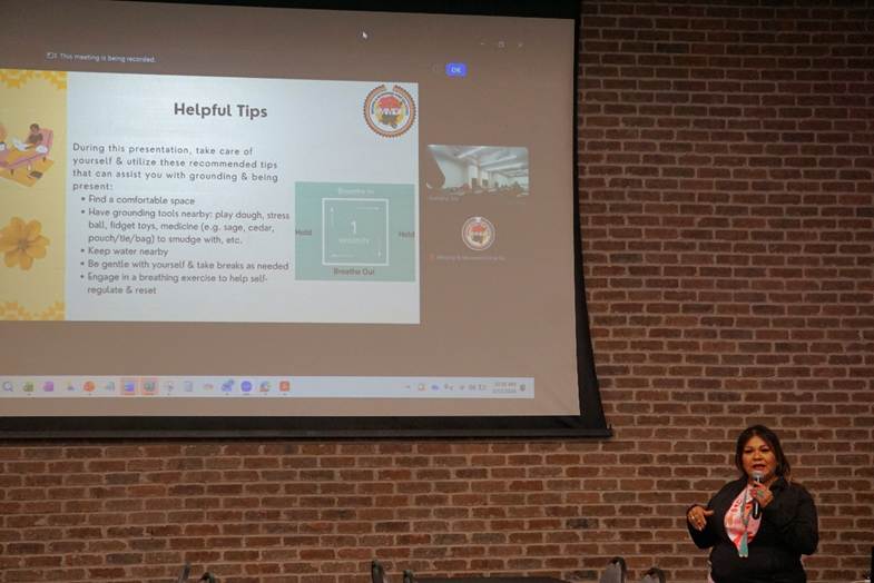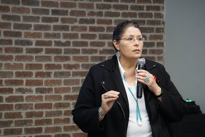 Vangie Randall Shorty welcomed participants to the Murdered Indigenous Peoples Forum.