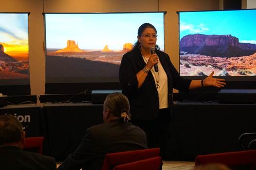 Sonlatsa Jim, NDCFS Deputy Director and DAP co-chair, presenting at the onsite visit.