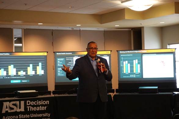 Other presentations were on the Navajo Data Management and Sovereignty Assessment and a demonstration of the Decision Theater at work by Chelsea Dickson, associate director at ASU Decision Theater.
