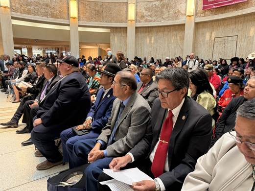 Tribal leaders listen to speakers at American Indian Day.